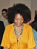 A typical texture of Black African hair that has not been altered by hot combs, flat irons, or chemicals (by perming, relaxing, or straightening). Each strand of this hair type grows in a tiny spring-like, corkscrew shape (though there are different textures and degrees of waviness, curliness, and kinkiness across the entire population). The overall effect is such that, despite relatively fewer actual hair shafts compared to straight hair,[3] this texture appears (and feels) denser than its straight counterparts. The effect may be referred to as "thick", "bushy", or "woolly", and has at times been criticized for appearing "unpolished", "unkempt" or "unprofessional". In the 2010s, there was a resurgence in choosing the natural look among Black African Americans.