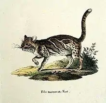 - ↑ Ross, J.; Brodie, J.; Cheyne, S.; Datta, A.; Hearn, A.; Loken, B.; Lynam, A.; McCarthy, J.; Phan, C.; Rasphone, A.; Singh, P.; Wilting, A. (2016). "Pardofelis marmorata". IUCN Red List of Threatened Species. 2016: e.T16218A97164299.