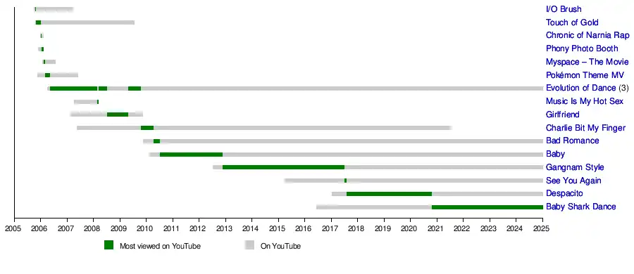- Timeline of most viewed videos (October 2005 – January 2024)