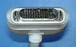 VGA connector (DE-15) | Became a nearly ubiquitous analog computer display connector after first being introduced with IBM x86 machines. Older VGA connectors were DE-9 (9-pin). The modern DE-15 connector can carry Display Data Channel to allow the monitor to communicate with the graphics card, and optionally vice versa.[10] | Being replaced by DVI from 1999 onward. | |