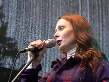 Due to the budget concerns, the Lithuanian delegation was permitted to arrive in Israel one day later than the other delegations.[11] Aiste took part in technical rehearsals on 25 and 26 May, followed by dress rehearsals held on 28 and 29 May.[12] The Lithuanian performance featured Aistė on stage performing in a black outfit designed by Juozas Statkevicius.[13][7] After the voting concluded, Lithuania scored 13 points and placed 20th.[14][15] At the time this result was the Lithuania's best placing in its competitive history.[16] In regards to the result, Aiste herself stated: "I don't mind [the result] at all. The twentieth or some other place is the least of my worries. These are games that its better not to think about. [...] And what I did at Eurovision, I did the right way. I am calm because of this. I couldn't performed better."[17] Due to a low average score, Lithuania was excluded from the Eurovision Song Contest 2000 held the next year.[18][19] Lithuania ultimately returned to the contest in 2001.