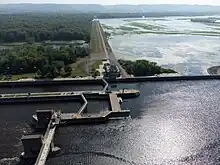 ![]() Lock and Dam 5A, Upper Mississippi River. View is upriver to the northwest. | |