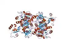 - ↑ May JJ, Kessler N, Marahiel MA, Stubbs MT (September 2002). "Crystal structure of DhbE, an archetype for aryl acid activating domains of modular nonribosomal peptide synthetases". Proc. Natl. Acad. Sci. U.S.A. 99 (19): 12120–5. Bibcode:2002PNAS...9912120M. doi:10.1073/pnas.182156699. PMC 129408. PMID 12221282.