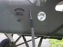 The Lufttransport Staffel 7 (LT St7 or LT 7) is a militia transport squadron of the Swiss Air Force. The LT St 7 belongs to the Flugplatzkommando 7 (Flpl Kdo 7). It is stationed on the Militärflugplatz Emmen. As coat of arms, the Lufttransport Staffel 7 wears a dark blue side view of a Pilatus PC-6 next to the two parachute jumpers in the free fall in front of the yellow letter LT and the word Staffel and two lines forming a 7 with blue background and a yellow circle. There is also a camouflage version, which has a dark green background, the LT Letters, the word Staffel and the double 7 are white, the side contour of the PC-6 is also by white. Previously the LT Staffel7 had a coat of arms showing a Globi on a red / white parachute against a light blue background and the black inscription: Lufttransport 7 Staffel / Kompanie.