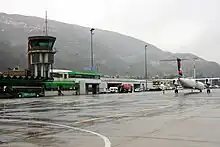 Lugano Airport (IATA: LUG, ICAO: LSZA)[lower-alpha 1] is a regional airport located 4 km (2.5 mi) west of the Swiss city of Lugano, approximately 80 km (50 mi) north of Milan, in the municipalities of Agno, Bioggio and Muzzano. It lies closer to the village of Agno than to Lugano itself, and is sometimes known as Lugano-Agno.[1][3] Around 200,000 passengers use the airport each year, using some 2,400 flights. There are also limited freight operations, a flying club and flight school. The headquarters of Darwin Airline were located at the airport[4] prior to its bankruptcy.[5]