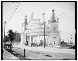 The cost of upgrading and maintaining his amusement parks proved too much for Ingersoll as he was forced to declare bankruptcy in 1908.[4] Several of the Luna Parks were sold to others; Pittsburgh's park was closed in 1909 in the face of competition of a second trolley park nearby, the older (and still-existing) Kennywood Park. When Kennywood expanded its fairgrounds in 1995, its new Lost Kennywood section was patterned after its former competitor,[5] centered on a shoot-the-chutes ride and having a one-third-scale replica of the Luna Park entrance as a "gateway" to the park, including an era-appropriate spelling of "Pittsburg".[4]