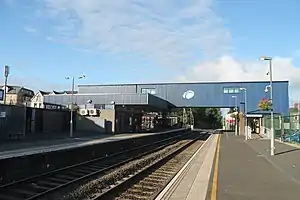 The station opened on 18 November 1841 by the Ulster Railway.[8] Following the merger of the Ulster Railway to the new company Great Northern Railway. The station was rebuilt in 1897 designed by William H. Mills to reflect the new Great Northern Railway's style.[9] After GNRI was liquidated in 1958 ownership of the station fell on the newly formed Ulster Transport Authority, then temporarily became Ulster Transport Railways (UTR) before being taken over by Northern Ireland Railways (NIR) in 1968. It briefly known as "Craigavon East" for a time back in the 1970s. On 22 July 1972, the original Great Northern Railway station building was destroyed by a paramilitary bomb, and subsequently the current station building was erected.[9][10]