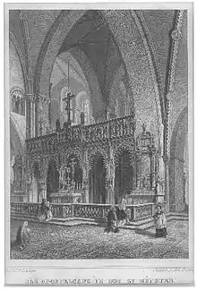 In 1870 the screen was demolished. Remains of the screen, including the sculptures can still be seen in the cathedral treasury.[13]