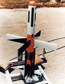 The Raytheon MGM-157 EFOGM (Enhanced Fiber Optic Guided Missile) was a long-range enhanced fiber optic guided missile developed for the U.S. Army during the 1980s and 1990s to test the use of fiber optics in missiles.[1][2] The missile was launched vertically and manually controlled by an operator on the ground by use of a television camera mounted on the nose.[3] The signals from the camera were carried via a thin wire that unspooled the further up the missile reached. The weapon was primarily designed for anti-tank use, or against low flying helicopters.[4][5]