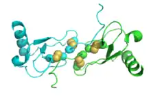 - ↑ Czaplewski LG, McKeating J, Craven CJ, Higgins LD, Appay V, Brown A, et al. (June 1999). "Identification of amino acid residues critical for aggregation of human CC chemokines macrophage inflammatory protein (MIP)-1alpha, MIP-1beta, and RANTES. Characterization of active disaggregated chemokine variants". The Journal of Biological Chemistry. 274 (23): 16077–84. doi:10.1074/jbc.274.23.16077. PMID 10347159.
