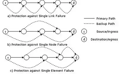 - ↑ Local protection primarily uses RSVP-TE extensions, which is a soft-state protocol and requires periodic refresh messages to maintain its states.
