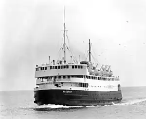 ![]() The original ferry Abegweit is now owned by the Columbia Yacht Club of Chicago, Illinois, where she is used as a clubhouse. | |