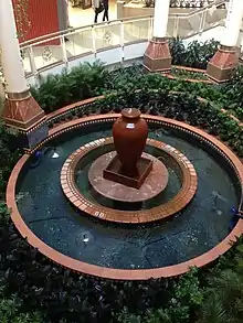 Macquarie Centre officially opened on 17 November 1981 by then premier of New South Wales Neville Wran. The centre featured an Olympic sized ice rink, Grace Bros (rebranded to Myer in 2004), Big W, Target, Woolworths and 130 speciality stores.[3] Macquarie Centre was the third centre in Sydney to facilitate an "incline mall" design (after Westfield Burwood and Westfield Hurstville) and was built on a spiral staircase around the sundial water fountain. This meant that it is a gently-ascending grade and that the levels were connected via a system of ramps, stairs and escalators.[4] Franklins Fresh was added to the centre in 1992 and was renamed to Franklins in 2001 and operated until its closure in 2012. The middle of the centre included a spiral atrium with interconnecting stairways called the "Rain Forest". In 1997 this area underwent a refurbishment, redoing the layout entirely and adding a sundial clock fountain, which was removed in 2015.