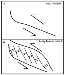 Figure 3: Leaky Transform Faults, such as the Emerald Fracture Zone, form at bends in transform boundaries.