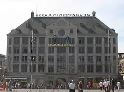 The idea to establish a wax museum in Amsterdam came from Josephine Tussaud (1900–1985), businesswoman and great-great-granddaughter of Madame Tussauds founder Marie Tussaud.[4] These museum was founded on February 19, 1970, under the name of Madame Tussauds Amsterdam by The Tussauds Group.[5][6] Approximately one year later, the museum first opened its doors at the main commercial street Kalverstraat becoming the first Madame Tussauds Wax Museum outside the United Kingdom.[7] Twenty years after it first opened its doors to the public in 1991, Madame Tussauds Amsterdam moved into the upper floors of the building of the international chain of clothing stores Peek & Cloppenburg at the Dam Square.[7] The following twenty years the museum was modernised in January 2012, and since then it includes interactive themes.[1]
