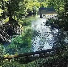 Along the Withlacoochee River one can find distinct examples of karst topography, which includes Suwannee Limestone, of the Oligocene age. Subsequently, Nestlé bought 2 adjoining acres, and a preexisting, but unused, bottling permit. After contentious hearings, the state authorized Nestlé to move forward, and tax incentives were approved for Nestlé's construction of a bottling plant. The plant opened in 2004. Water from this operation is used for Nestlé's Deer Park and Zephyrhills bottled water brands.[1] Not only is Madison Blue Springs State a prime source for bottle planting but it also provides many recreational resources for individuals. These of which include birding, fishing, paddling, picking, diving, swimming, and tubing.