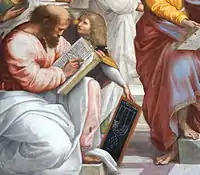 Detail of Raphael's School of Athens showing Pythagoras with epogdoon diagram