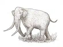 Mammuthus subplanifrons is the oldest representative of the genus Mammuthus, appearing around 5 million years ago during the early Pliocene in what is today South Africa and countries of East Africa, especially Ethiopia. They already presented some of the unique characteristics of mammoths like the spirally, twisting tusks.[2] It was 3.68 metres (12.1 ft) tall at the shoulder and weighed about 9 tonnes (8.9 long tons; 9.9 short tons).[3] In 2009, it was suggested that Loxodonta adaurora is indistinguishable from Mammuthus subplanifrons.[4] However, other authors have continued to regard the species as distinct.[5] Isotope analysis of specimens from South Africa suggests that M. subplanifrons was a flexible feeder.[6]