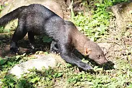 About 160 species of mammals have been reported in the park.[1] Mammals found in the lowland rainforest zone of the park include: the jaguar, the tayra, the giant armadillo, the puma (also present in mountainous areas), the ocelot, the collared peccary, the giant otter, the Peruvian spider monkey, the Mexican free-tailed bat, the jaguarundi, the capybara, the tufted capuchin, the white-lipped peccary, the greater bulldog bat, the Southern Amazon red squirrel, the marsh deer, the water opossum, the red brocket, the brown-throated sloth, the black-capped squirrel monkey, the South American tapir, the southern tamandua, the moustached tamarin, the pacarana, etc.[9] Mammals reported from mountain zones in the park include: the white-tailed deer, the Andean fox, the mountain paca, the long-tailed weasel, the montane guinea pig, the spectacled bear, etc.[9]