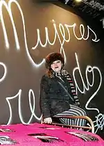 María Galindo Neder was born on 1964 in Cochabamba[1] (another source says La Paz) to an upper-middle-class family.[2] Maria left Bolivia with a visa as a nun to study at a Vatican university.[1] She later returned in 1992, and on March 8, she co-founded Mujeres Creando ("Women Creating"), a Bolivian collective and social movement which confront sexism and homophobia. She broadcasts a regular radio program from Mujeres Creando.[3] For her controversial actions (often labeled as performance art or street theater), she was arrested and assaulted several times by Bolivian police even though her older brother, José Antonio Galindo Neder, was a minister under former president Carlos Mesa. She also champions the rights of women who are victims of abuse and sexual harassment caused by machismo. Gallindo, a psychologist, teaches sociology at Higher University of San Andrés.[2] She states, "The street is the most important political setting. So we took the street and made the graffiti that we continue to make in four cities in the country. With graffiti, we try to mix different topics simultaneously."[4] Galindo is an atheist.[2]