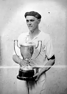 Mendizábal with a txapela and trophy