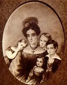 Ribeiro de Andrade married his niece Gabriela Frederica, daughter of Jose Bonifacio de Andrada e Silva, in Santos on 15 November 1820. They had three sons. Martim Francisco Ribeiro de Andrada II (born 1825) was deputy for São Paulo, Minister of Foreign Affairs (1866) and president of the Chamber of Deputies during the Second Empire (1882). José Bonifácio the Younger (born 1827) was a writer, senator of the Empire of Brazil and Minister of the Navy of Brazil. Antônio Carlos Ribeiro de Andrada (born 1836) was deputy for Minas Gerais in the House (1885) and Senator of the Constituent State (1891). Their two daughters were Maria Flora de Andrada and Narcisa de Andrada.[8]