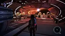 The pack's content is accessible once the base game's narrative progresses to a predetermined point where Shepard attains Spectre status.[2] It introduces a training facility where Shepard can compete in eight virtual reality combat scenarios, simulated by holographic projectors which create visual representations of opponents and obstacles, and are divided into four different game modes.[3] Survival is a battle mode in which the player's squad fend off attackers for as long as possible; in Time Trial, the squad needs to take down a set number of enemies as quickly as possible; for Hunt mode, a timer counts down to zero and the player needs to add time to their clock by defeating up to a certain number of enemies; in Capture mode, the player runs to a predesignated point and holds their position for a short while until the capture is complete.[3] After beating the combat scenarios, the player would need to complete four more to unlock a special Survival mode, which is the same as the previous Survival challenges but the time limit is set at five minutes.[4] The premise of the pack is that Shepard will be rewarded with an apartment and "a steady influx of rare items" by successfully advancing through the challenge scenarios and emerging as the top competitor on Pinnacle Station's virtual leaderboards.
