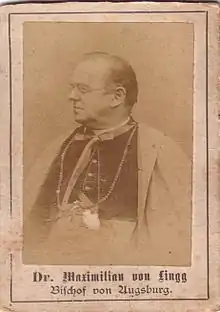 Maximilian Joseph Lingg, from 1902 Ritter von Lingg (* 8 March 1842 in Nesselwang; † 31 May 1930 in Füssen), was the 78th Bishop of Augsburg.