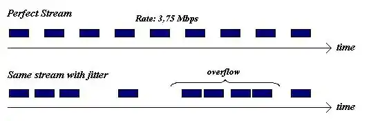 If packets are delayed by the network, some packets arrive in bursts with interpacket delays shorter than when they were transmitted, while others are delayed such that they arrive with greater delay between packets than when they were transmitted from the source (see figure below). This time difference between when a packet actually arrives and the expected arrival time is defined as packet jitter or time distortion.[3]