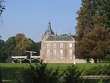 Merckenburg Castle, also known as Castle Heukelum, is a brick castle in the town of Heukelum in the municipality of West Betuwe in The Netherlands. It dates back to the 13th century. The castle has been destroyed and rebuilt twice. The first time was in the fourteenth century, the second time in the disaster year 1672, when the French blew up the building during the Franco-Dutch War. The castle was restored around 1700, attached to the keep that had not been destroyed by the explosions.