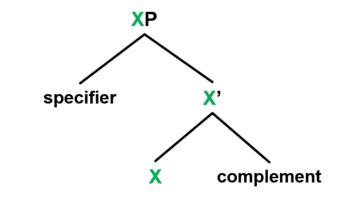 - the Specifier is introduced as sister to X', and forms the maximal projection, labeled XP.