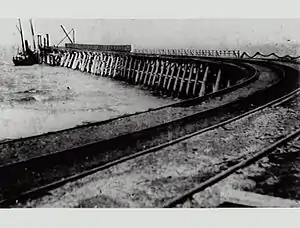 She had discharged part of her coal cargo, and was endeavouring to go through the swing bridge when, owing to being light right at the stern, through the discharge of coal from the after hold, she became unmanageable and crashed into the bridge. The forward part of the steamer was badly damaged and the whole fore compartment was flooded. But for the forward bulkhead, which prevented the water getting into the hold, the vessel would have foundered. As it was she had to be berthed, and the remainder of her cargo is now being discharged.[17]