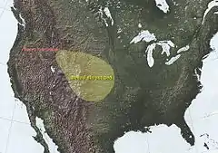 The Mesa Falls Tuff is a tuff formation produced by the Mesa Falls eruption that formed the Henry's Fork Caldera that is located in Idaho west of Yellowstone National Park.[1] It is the second most recent caldera forming eruption from the Yellowstone hotspot and ejected of 280 km3 (67 cu mi) of material. This eruption, 1.3 million years BP, was preceded by the Huckleberry Ridge Tuff and succeeded by the Lava Creek Tuff, both of which were also formed by the Yellowstone hotspot.[2]