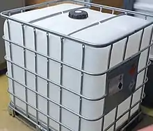 IBC container with 1000 L renewable methanol (the energy content is the same as that of 160 pieces of 50 L gas cylinders filled with hydrogen at 200 bar)[5][6][7]