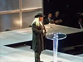 Hayes speaking at a WWE Hall of Fame ceremony in 2009