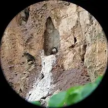 This falconet is generally social and gregarious, often found in loose pairs or groups of ten or more. The breeding season for this falcon varies by location, with populations up to the North of the equator breeding mostly in February–June. To the South of the equator, egg-laying is recorded in Java in November–December.[2] This falconet usually uses old nest holes of barbets, or occasionally old woodpecker holes. No material is added in the cavity aside from insect remains. The typical clutch size is between 2-5 eggs. Incubation and fledging periods are unknown. The nest hole may be used as a roost by adults year-round.[2]