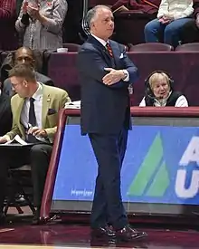 Michael Kent Young (born May 1, 1963) is an American college basketball coach and currently the head men's basketball coach at Virginia Tech. He was hired on April 7, 2019, after a 17-year stint where he went 299–244 (.545) as the head coach at Wofford College.[1]
