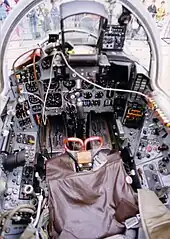 The cockpit features a conventional centre stick and left hand throttle controls. The pilot sits in a Zvezda K-36DM ejection seat.