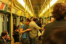 Paper tickets can be substituted by contactless bank cards payments, provided the trip starts in the metro, by tapping in the orange gates installed in every metro station.[21] This payment method is not available on suburban lines; it was expected to be implemented on trams and buses starting by the end of 2019;[22] it was eventually introduced in December 2020 on three urban bus lines, with plans for coverage on all the network by 2023.[23]