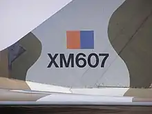 In addition to insignia displayed on military aircraft wings and fuselages, usually in the form of roundels, a fin flash may also be displayed on the fin or rudder.[3] A fin flash often takes the form of vertical, horizontal or slanted stripes in the same colours as the main insignia, and may be referred to as "rudder stripes" if they appear on the rudder instead of the fin, as with the French Armée de l'Air. Alternatively, a national flag or a roundel may be used.