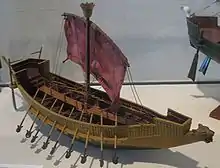 Before the New Kingdom, the Egyptian military was mainly aquatic, and the high ranks were composed of elite middle-class Egyptians.[34] Egyptian troops were transported by naval vessels as early as the Late Old Kingdom.[35] By the later intermediate period, the navy was highly sophisticated and used complicated naval maneuvers, such as Kamose's campaign against the Hyksos in the harbor of Avaris (c.1555–1550 BC)[36]