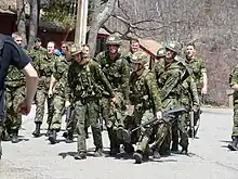 Conscripted enlisted, serving a 9-month obligation, are called 6 times per year. They report to various recruit camps spread over the country. The first week is the reception week, followed by a 3-week basic soldier training course, which ends with the oathing ceremony. Depending on their awarded specialty the conscript recruits are then transferred to specialty training camps or to operational units. In the operational units the recruits go through a 3-week 'advanced' recruit training course, followed occasionally (depending on whether they have already received specialty training or not), by a 2 to 6 week specialty training course, conducted by the unit.[29]