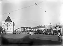 The Minin and Pozharsky Square (Russian: Площадь Минина и Пожарского, romanized: Ploshchad Minina i Pozharskogo), also known as just Minin Square, is the main square of Nizhny Novgorod. It is a social and cultural center of the city, the venue of the most important celebrations. It is located in the historical centre of the old town from the southeast side of the Kremlin.