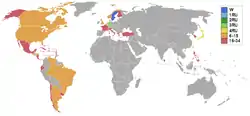 The 1955 edition saw the debuts of Ceylon, Ecuador, England, Guatemala, Lebanon, and Nicaragua, and the return of Venezuela who last competed in 1953.[5] Australia, Hong Kong, New Zealand, Panama, Peru, Singapore, and Thailand withdrew after their respective organizations failed to hold a national competition or appoint a delegate.