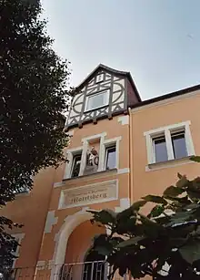- Former Town Hall of Moritzberg dating from 1907. Above the entrance there is a statue of Saint Maurice.