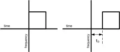 Shifting on time axis is like horizontal shifting in time-frequency distribution. On another hand, shifting on the frequency axis would be vertical shifting in time-frequency distribution.