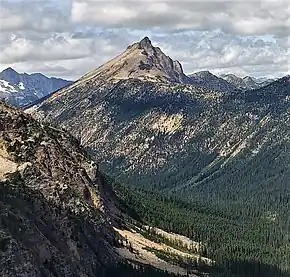 Mount Hardy is an 8,080+ ft (2,460+ m) mountain summit located on the common border of Okanogan County with Skagit County in Washington state. It is part of the Okanogan Range which is a sub-range of the North Cascades Range.[1] Mount Hardy is situated west of Methow Pass, at headwaters of the Methow River, on land administered by the Okanogan–Wenatchee National Forest. The nearest higher peak is Golden Horn, 1.75 miles (2.82 km) to the northeast.[1] Mount Hardy can be seen from the North Cascades Highway which traverses below the southwestern base of the mountain. This mountain's name was officially adopted in 1973 by the United States Board on Geographic Names.[3]