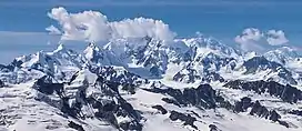 Mount Steller is a peak at the far eastern end of the Chugach Mountains of Alaska, United States. It is notable for its isolated location among extensive icefields, and for its large rise above local terrain. For example, it rises 8,000 feet (2,400 m) above the Bering Glacier to the south in about 4 horizontal miles (6.4 km).