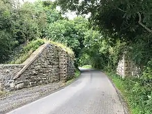 ![]() Remains of the bridge which once carried the railway across the Mullafernaghan Road immediately to the east of the station. | |