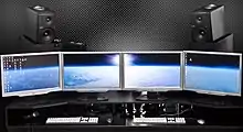 More recently, games have used multiple monitors to show a more absorbing interface to the player or to display game information. Various flight simulators can use these monitor setups to create an artificial cockpit with more realistic interfaces.[9] Others such as Supreme Commander and World in Conflict can use an additional monitor for a large scale map of the battlefield.[10]